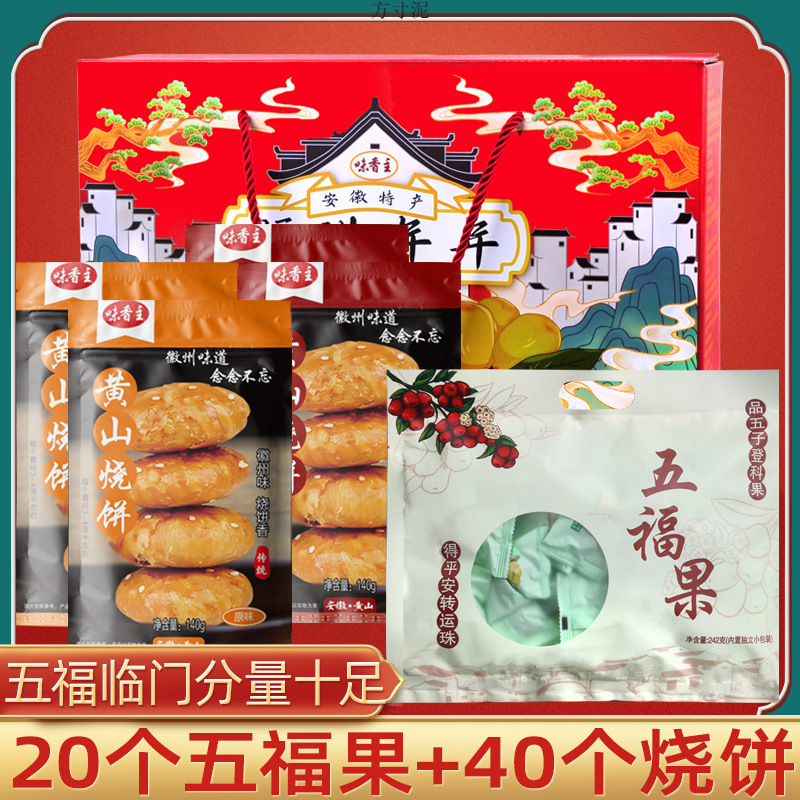 黄山の焼き餅の礼箱は安徽の特産の恵州の菓子の梅干しの野菜の減肉のお餅を詰めて贈り物をします。