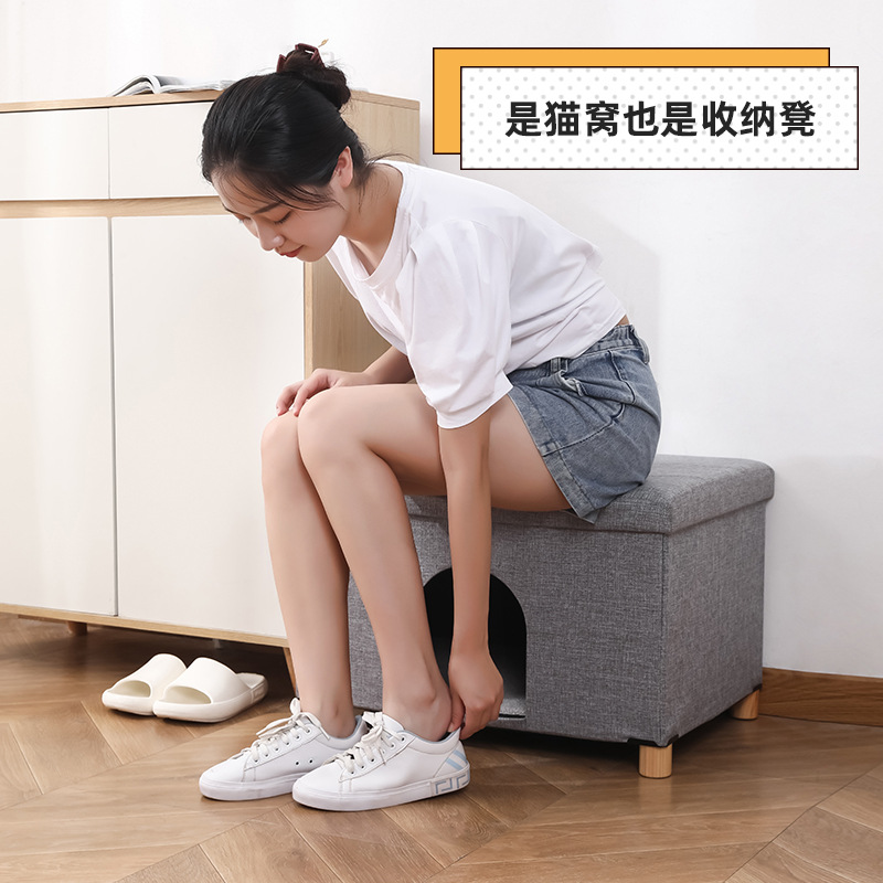 メーカー卸売猫の巣四季クリエイティブ猫ケージ綿とリネンの収納スツール半密閉型猫ハウス猫ヴィラ靴交換スツール