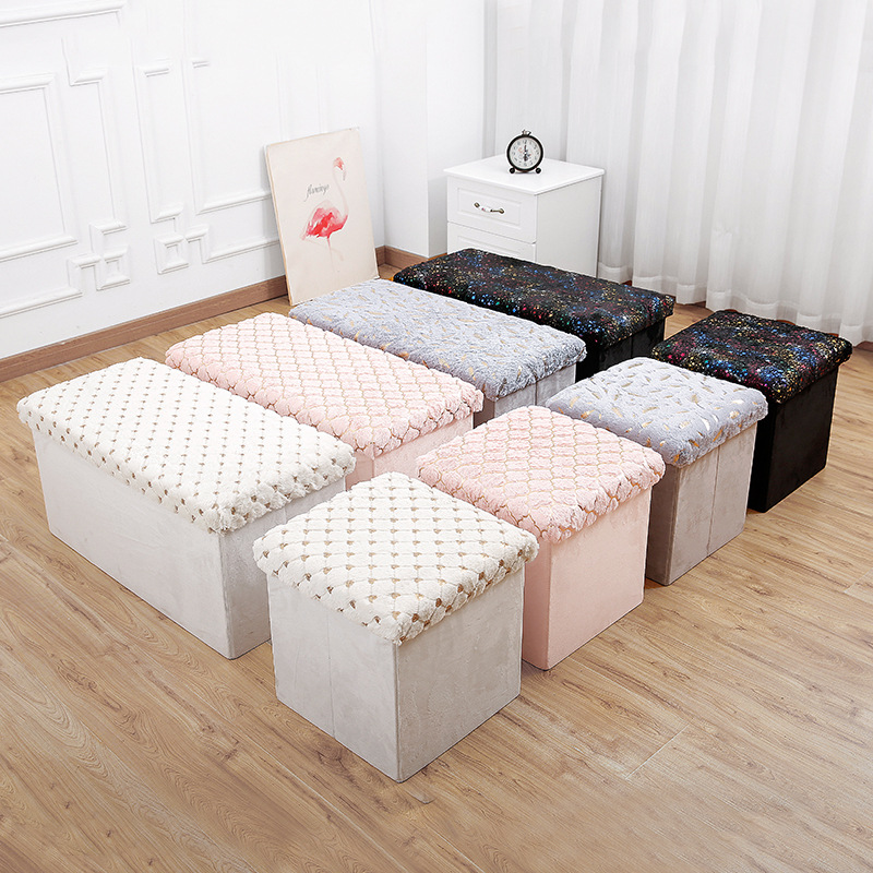 豪華な布ホットスタンピング収納スツール折りたたみ衣類収納ボックスホームドア靴交換スツール収納整理ボックス
