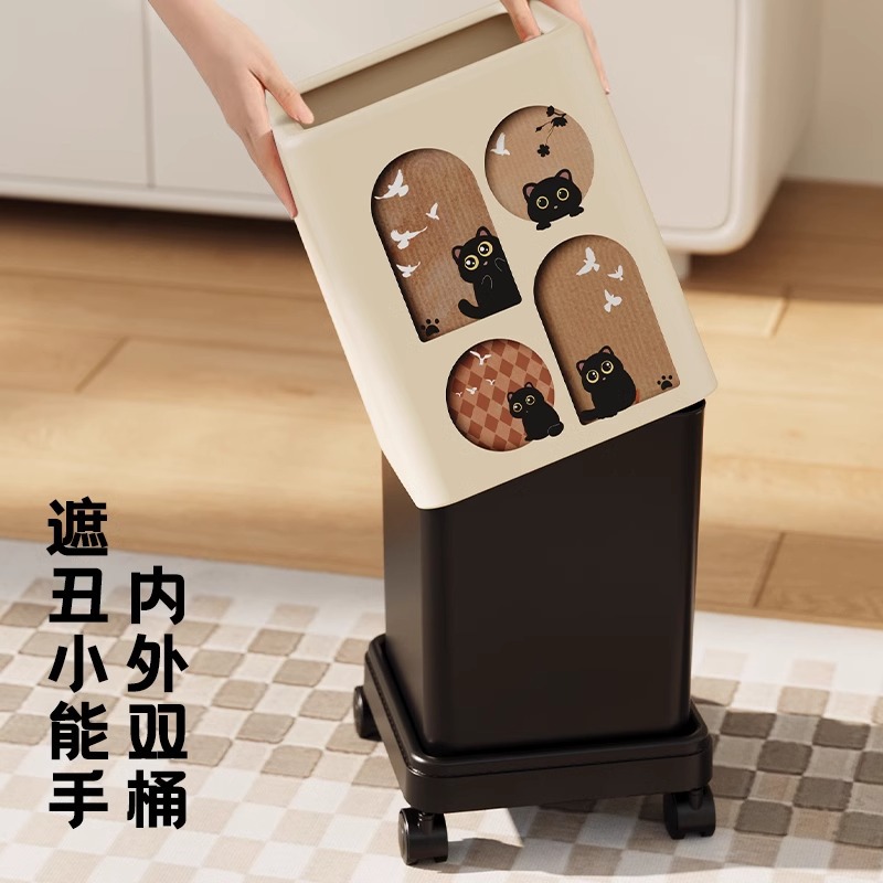 クリエイティブなパーソナライズされたゴミ箱、大きなオープンゴミ箱、寝室とリビングルーム用の車輪付きペーパーバスケット、便利な大型ゴミ箱