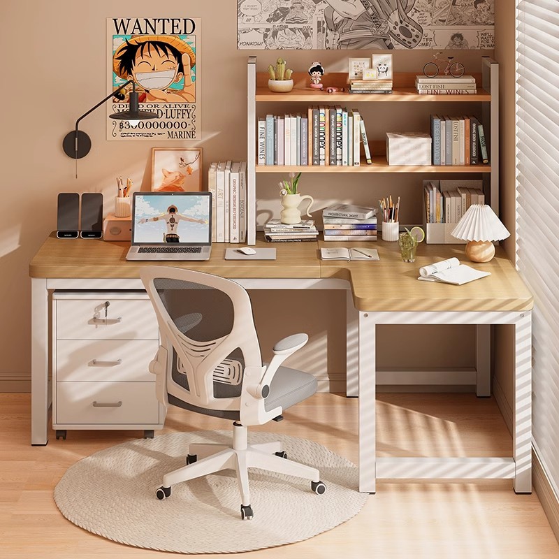コーナーコンピュータデスクデスクトップホームダブル無垢材エコボードデスク本棚コーナーテーブル学校学生学習テーブル