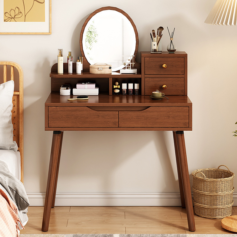 化粧台小戸型寝室シンプルモダン収納一体化粧テーブル簡易原木風ベッドサイド化粧テーブル