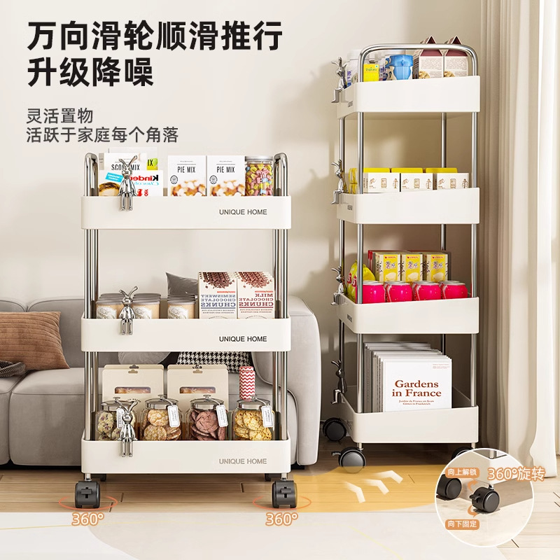 カート棚家庭用スナック床置き多層リビングルーム美容収納好物本棚移動挟み棚