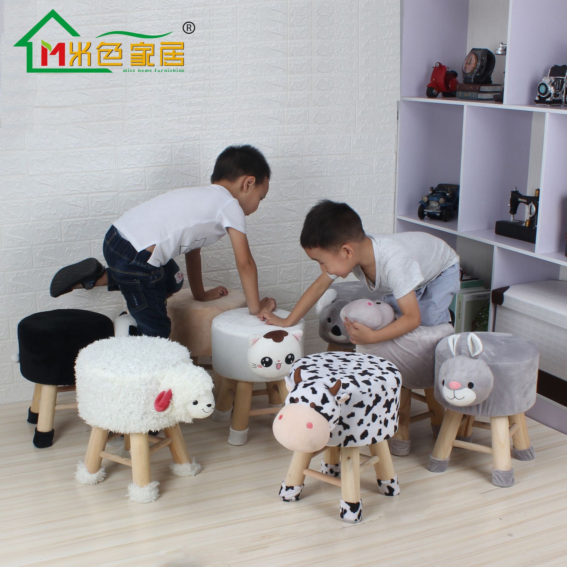 工場直販無垢材子供用漫画スツールおもちゃフランネルスツールペットスツール取り外し可能な人形布カバー木製フットスツール