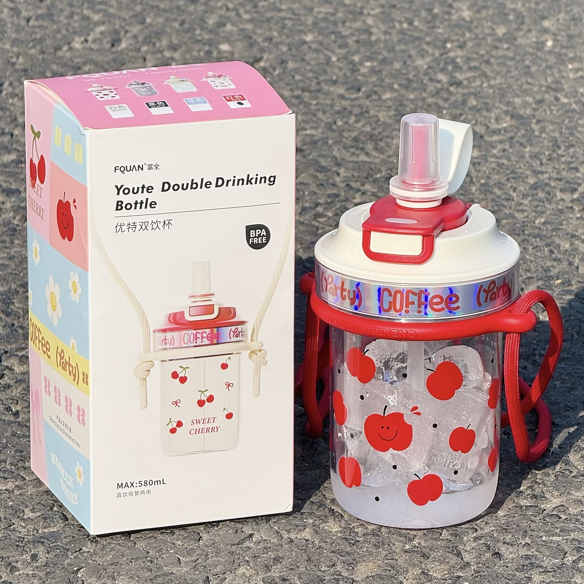学校に行く子供や学生向けのストロー断熱カップ、2025年の新しいスタイルの見栄えの良い女性用ポータブルダブルドリンクカップ