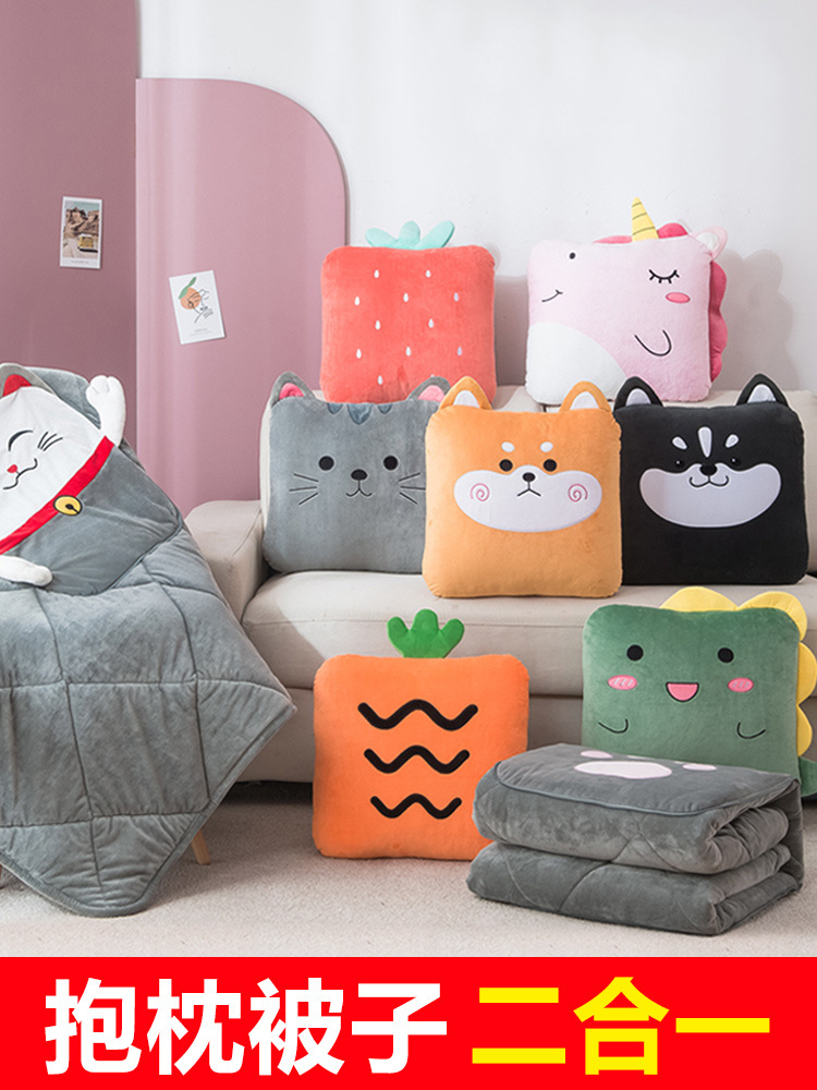 抱き枕布団両用厚手オフィス折り畳み昼寝枕ブランケット二合一ソファー自動車枕車載