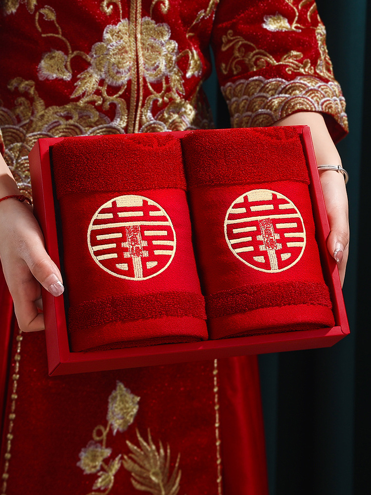 結婚タオルのペアの純綿の洗顔タオルの結婚式のお土産カップルの喜字の柔らかいマスクのウェディング用品の大全