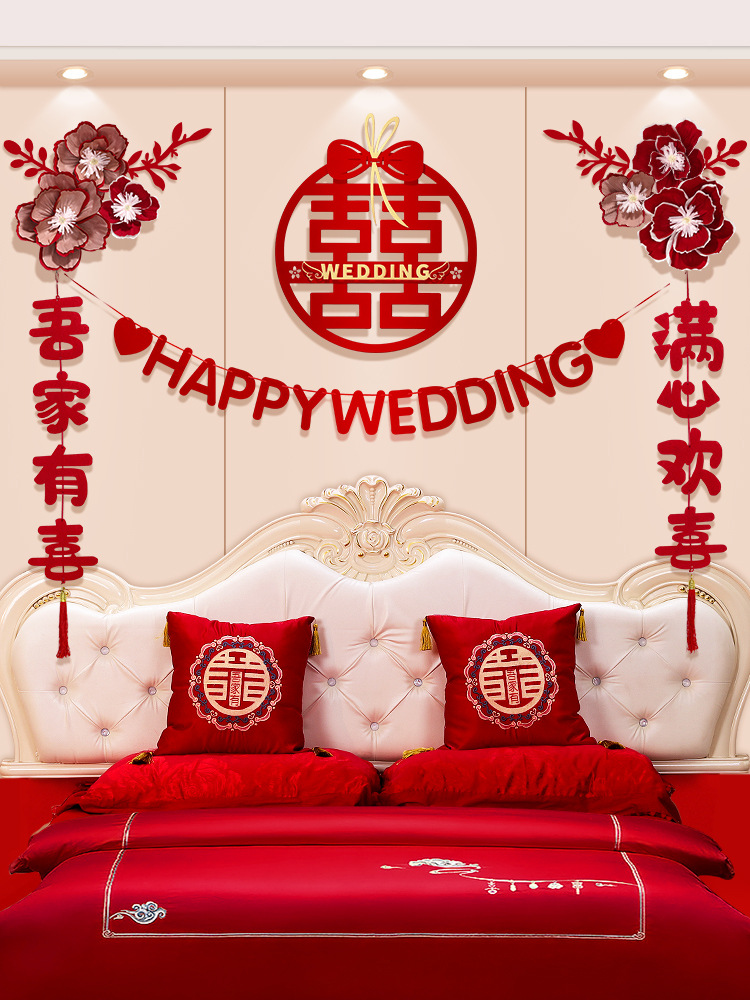 喜字貼婚房配置セット結婚ベッドの背景壁の雰囲気感装飾結婚式の新築飾り物