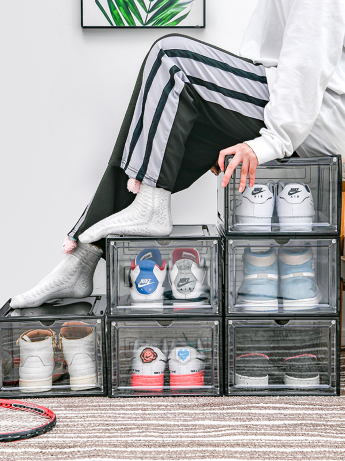 シューズケース収納ケース透明シューズ収納厚手マグネットアクリル簡易ハードプラスチック寮側開きスペース