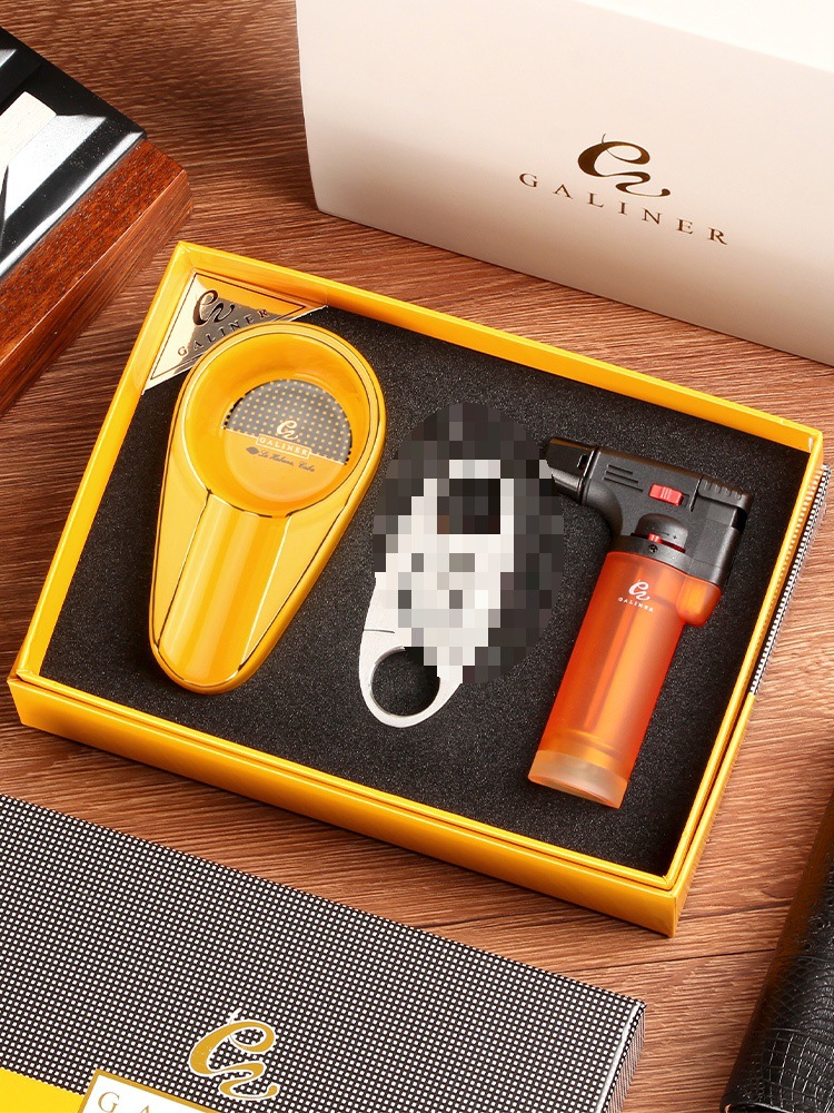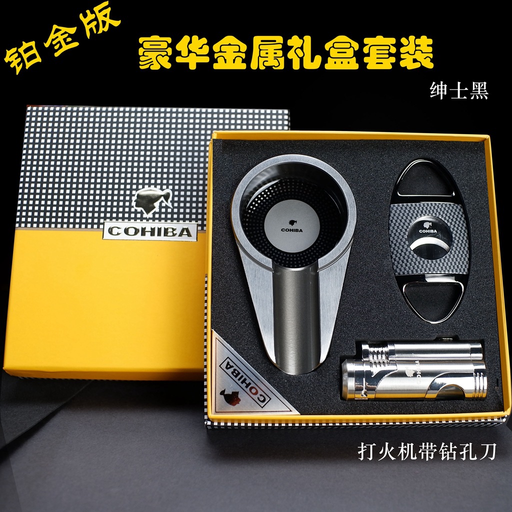 シガーカッターセットツールスリーインワン穴あけ器セラミック灰皿ペンチ専用ライター3点セット