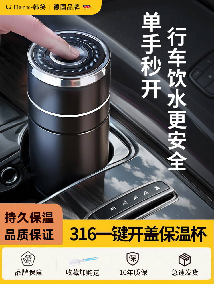 保温カップ2024新型男性車載押しワンキー開蓋カップ運転手運転専用ステンレスカップ