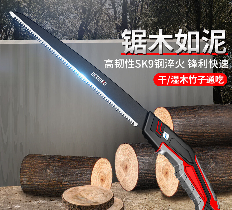 のこぎりの家庭用小型の木の神器を持って木を切ります。