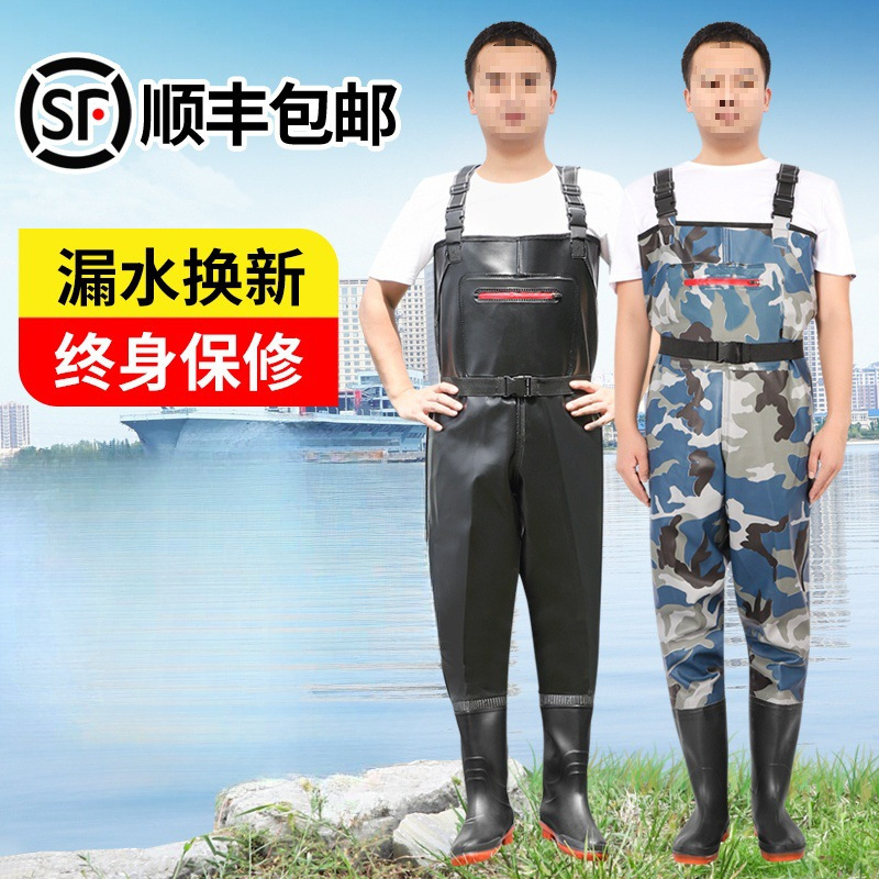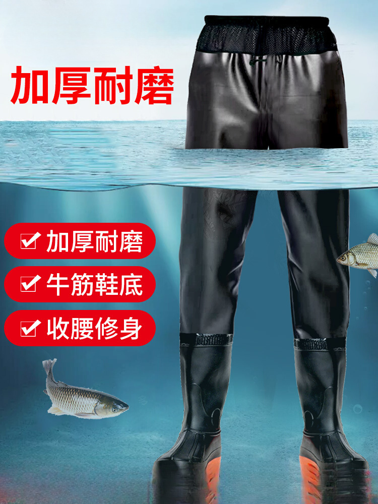 厚い半身の下のズボンは腰をそろえて超軽い防水雨のズボンは雨の靴の皮のフォークを持って魚のダムの渉水服の男性の連体を捕まえます。