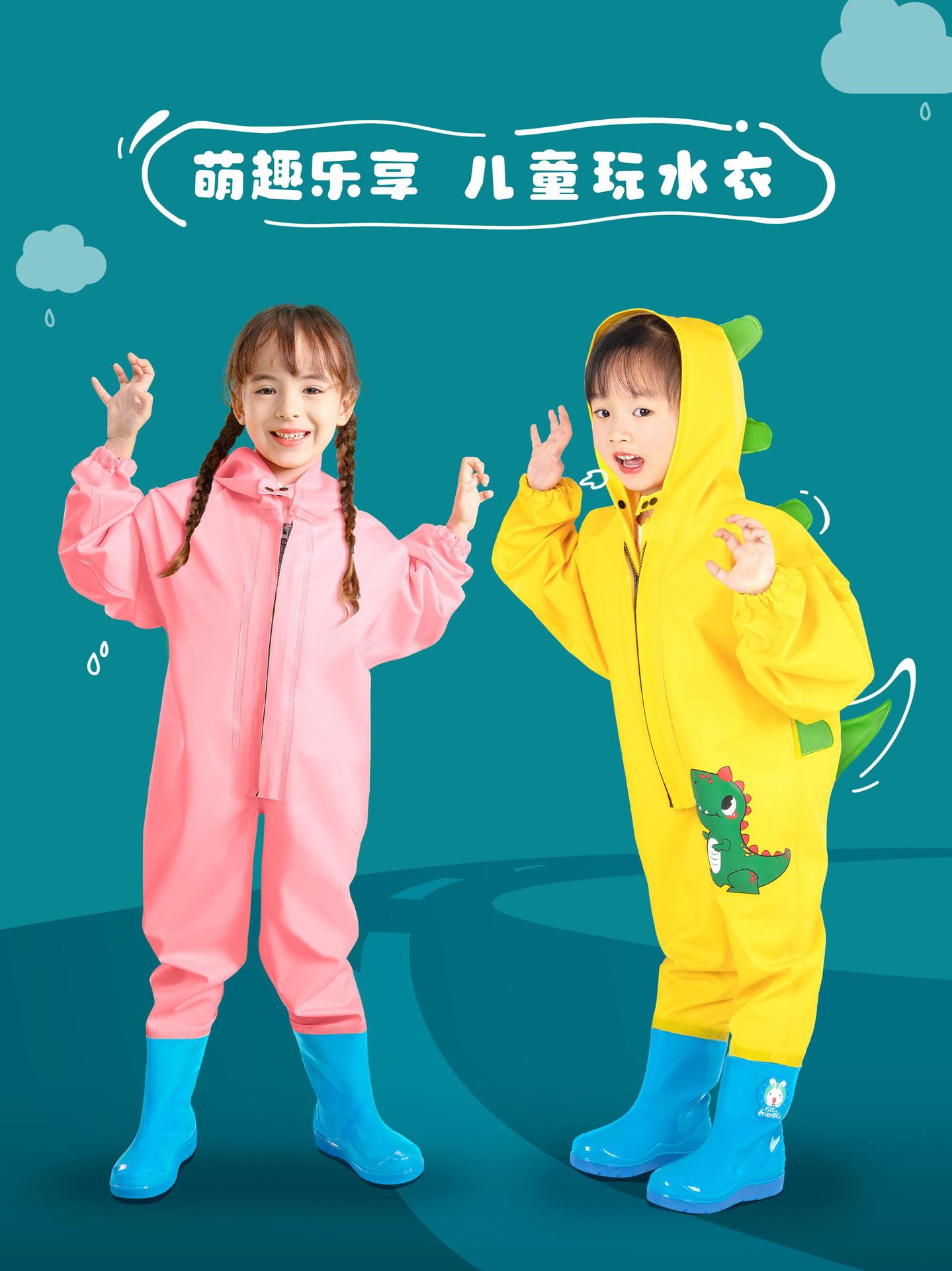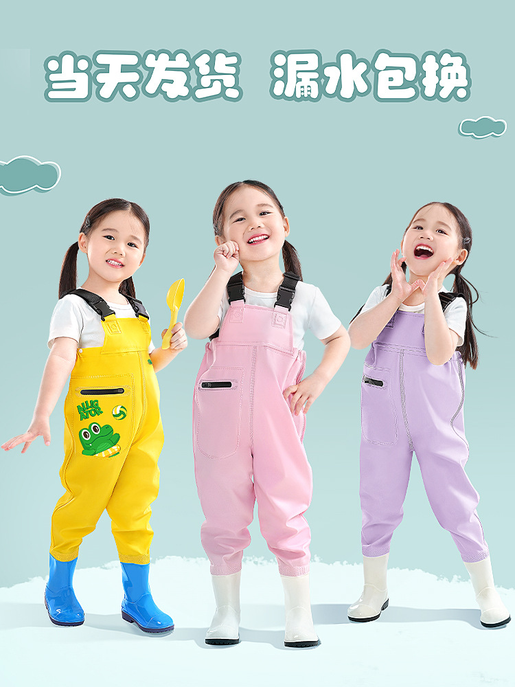 子供は海を追い払って体を連ねて水を遊ぶ服の全身の防水の雨のズボンの雨の靴の一体の水のズボンの渉水の幼稚園の装備を遊びます。
