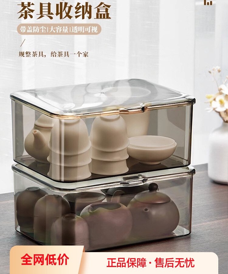 茶器収納ケース蓋付き防塵透明茶卓茶茶茶杯整理保管工夫ティーポット棚