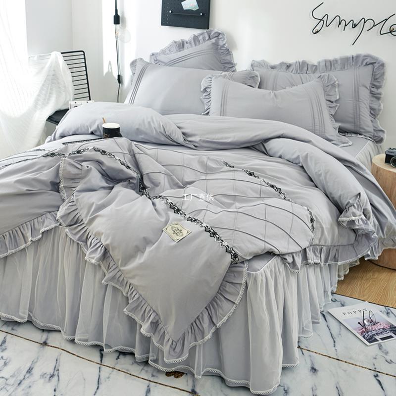 ヨーロピアンスタイルの高級ベッド4点セット 純綿100綿 プリンセス風フリルベッドスカート ガーリーハートイン ネットセレブ