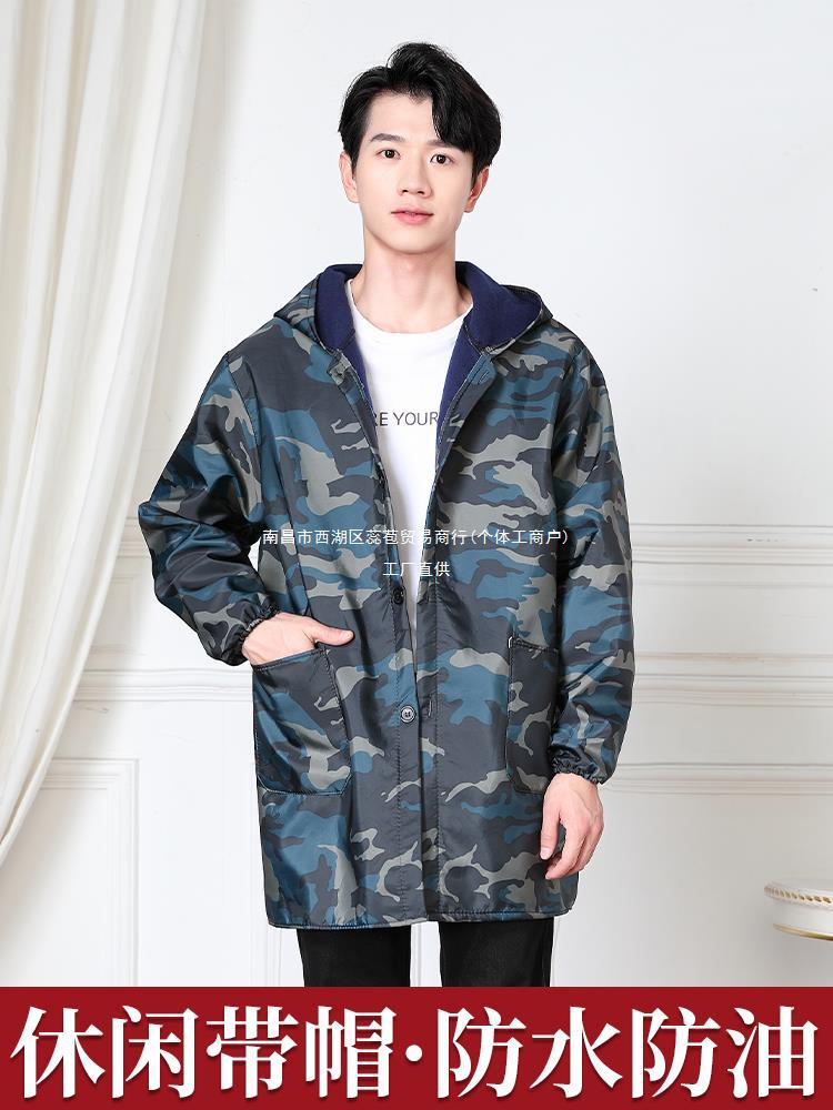ブラウス男性ベルベット家庭用防水防油長袖エプロンキッチン厚い冬大人作業服迷彩コート
