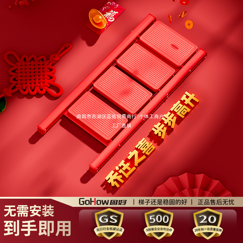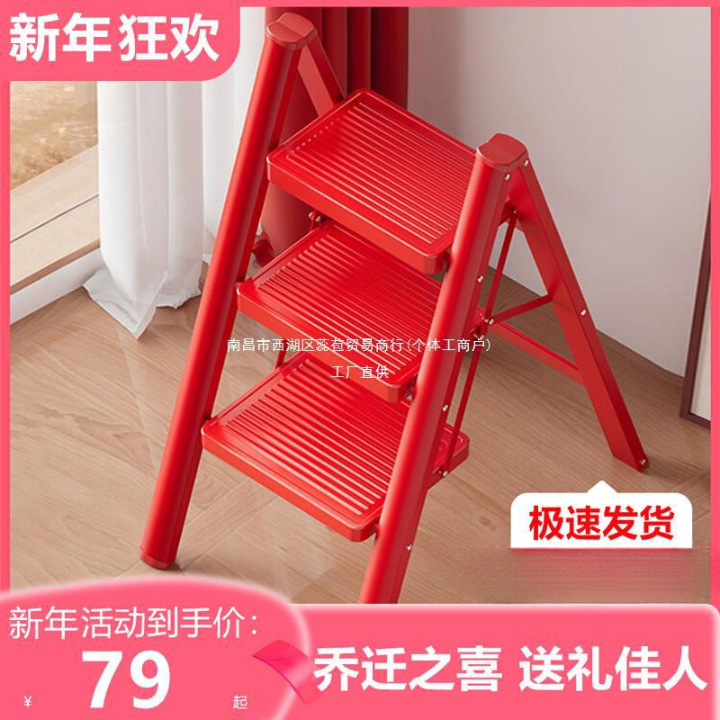喬迁の喜紅梯子家庭用厚手折り畳み伸縮梯子一歩一歩上昇人字梯子三四歩引っ越しプレゼント