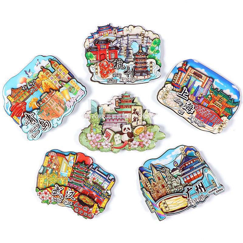 中国の都市冷蔵庫は上海北京成都長沙重慶青島西安杭州観光記念品を貼っています。