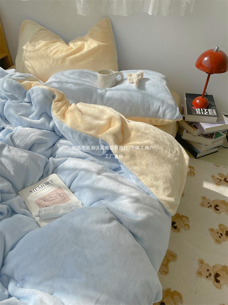 梨夢チーズブルーブルー ~ 秋冬に保温ミルクの毛を厚くする4セットのサンゴの布のシーツは寝具をカバーします。