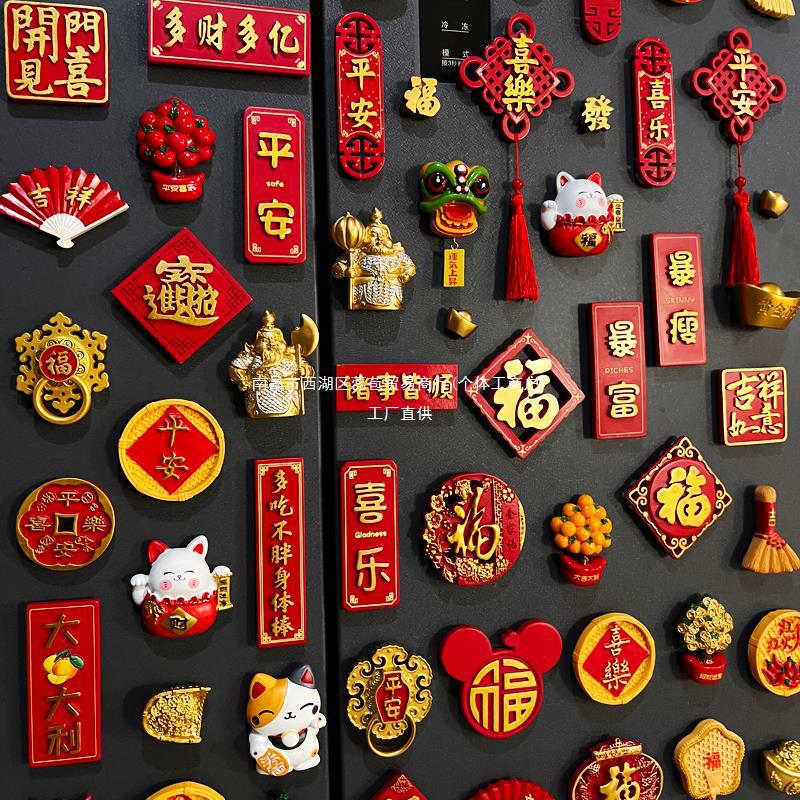 3d立体個性創意2024新作新年龍年冷蔵庫貼付マグネットステッカー春節対聯財神門貼