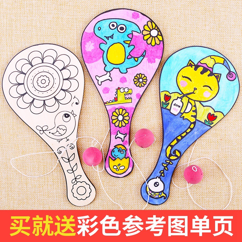 手描き木製ラケット幼稚園ラケット小道具子供手作りdiy絵画落書き塗りラケットおもちゃ