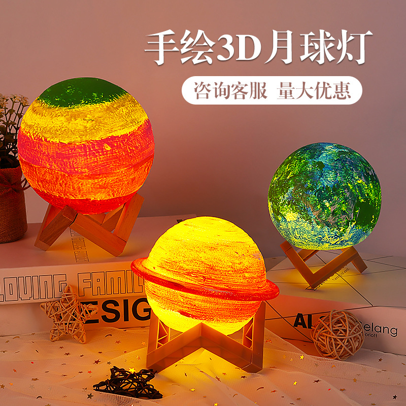 月球灯手描き星球灯diy置物小夜灯ネット赤3d星空幻想創意制作材料包