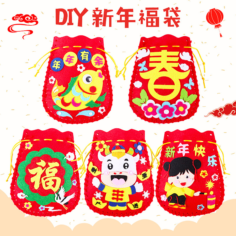 2024新年福袋diy手作りバックパック幼稚園不織布福包益智貼り材料包