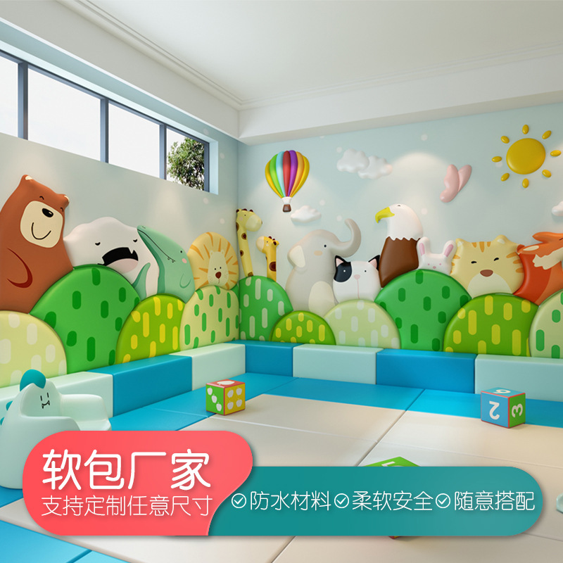 新型の衝突防止ソフトバッグ子供の部屋の壁面に漫画の模様の壁を飾って背景の壁の幼稚園の早教センターを貼ります。