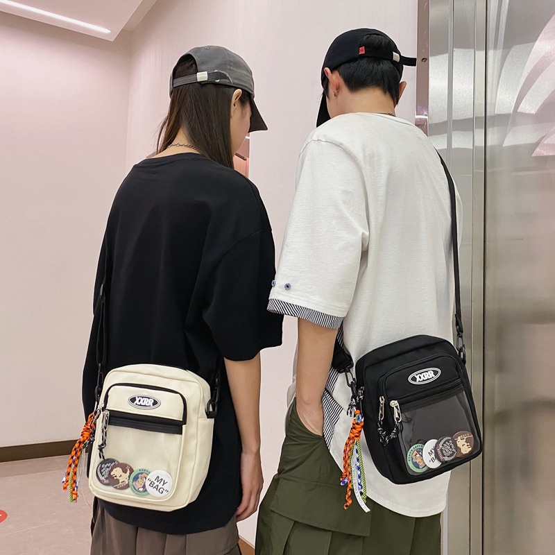 シンプルなカップルのショルダーバッグ2024新型工装風小方包潮牌港風斜め包携帯電話小銭入れ
