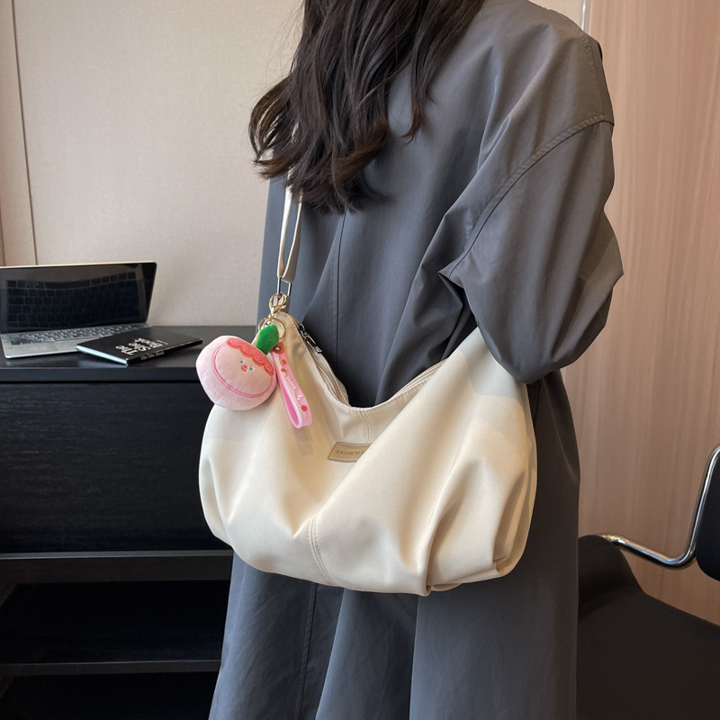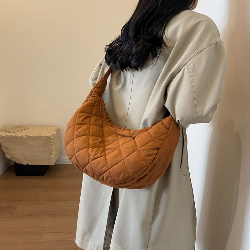 ナイロン布バッグレディース大容量2023新作秋冬百合シングルショルダーバッグ布バッグ高級感餃子バッグ