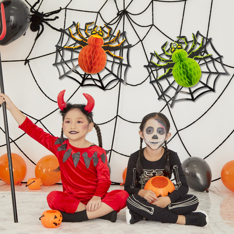 ハロウィンクモの装飾、お祝い用品、クモの吊り下げ装飾、格納式シャドウクモの巣、パーティー装飾小道具