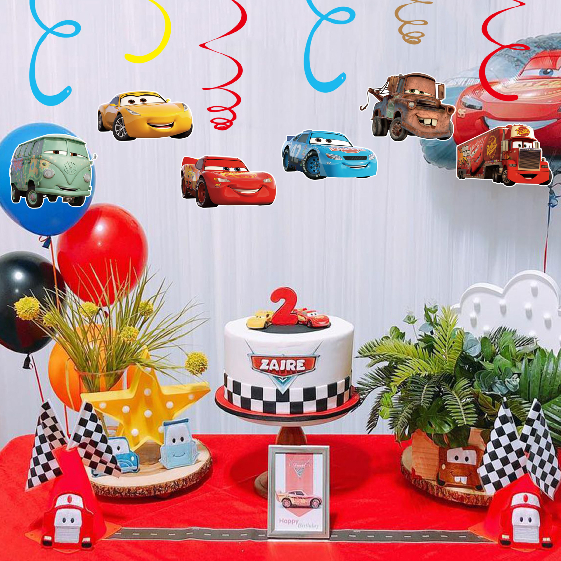 車の総動員の誕生日のテーマのスパイラルはパーティーの装飾用品の雰囲気を飾ってアイデアの天井を飾って飾ります。