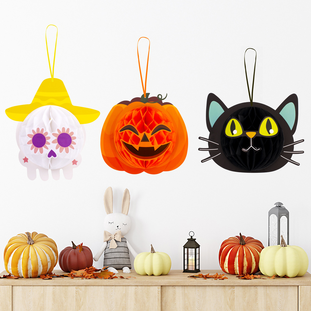 国境を越えた新しいハロウィーンハニカム紙ペンダントカボチャ立体ハニカムペンダント魔女幽霊紙パーティー装飾