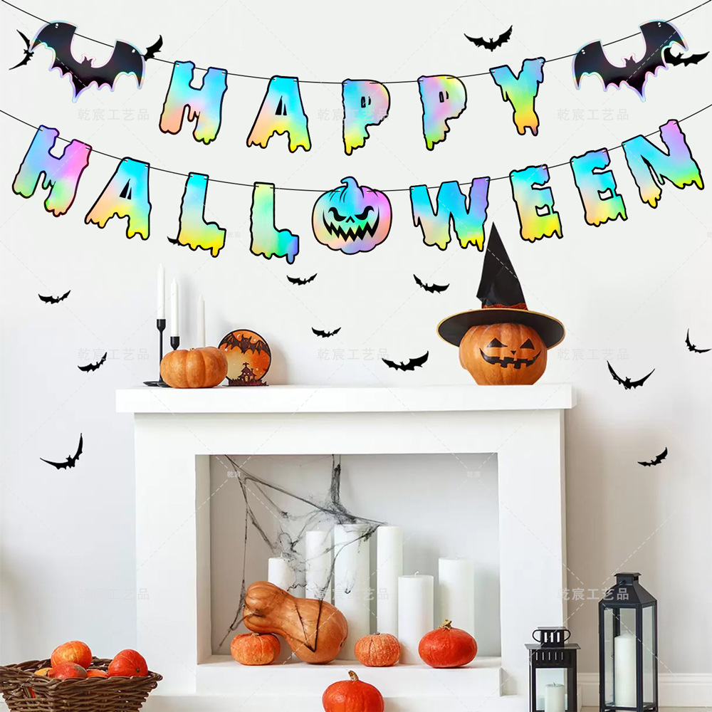 新品ハロウィーン装饰happy halloweenラ旗コウモリステッカーお化け屋敷雰囲気装饰アレンジ