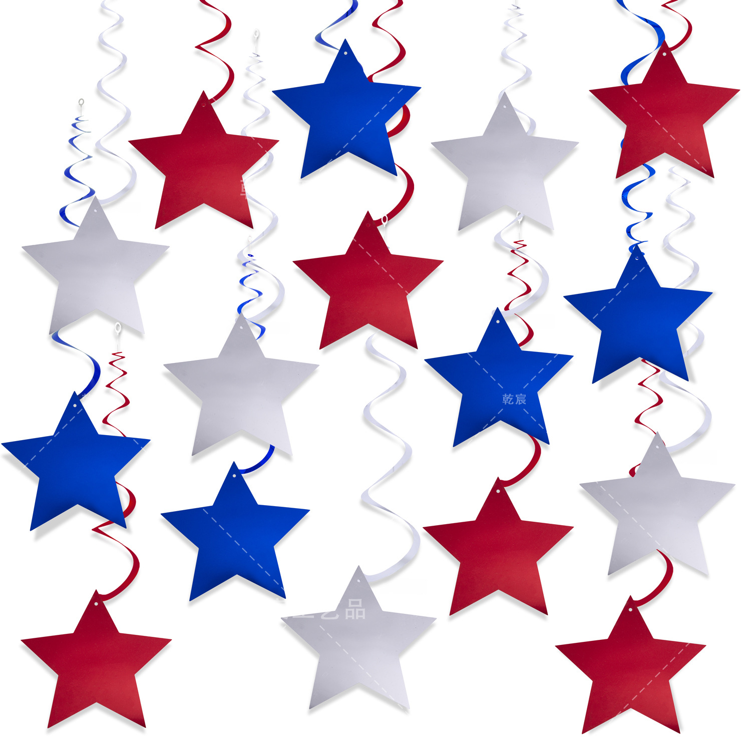 独立日五芒星吊り下げ渦巻き飾りアメリカ国慶節テーマパーティー天井飾り