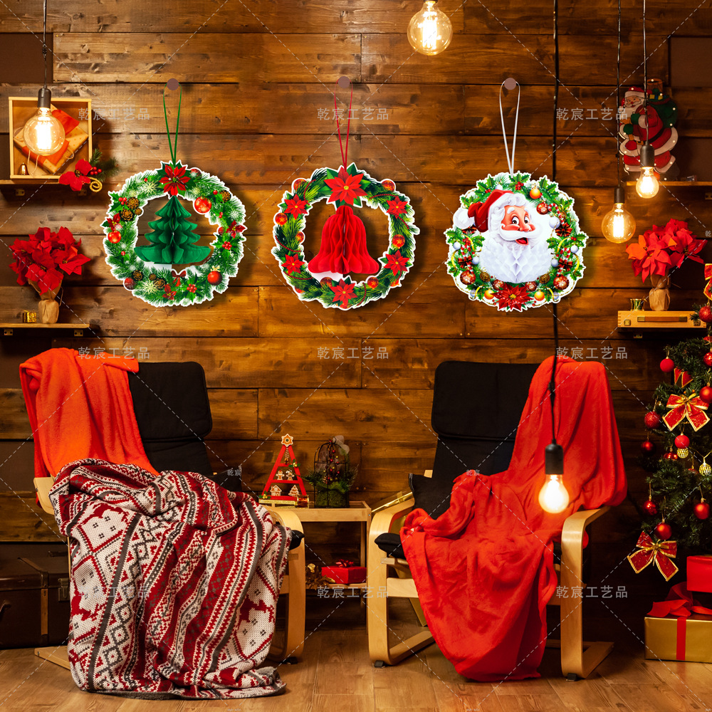 新しい越境クリスマスの花輪はクリスマスの装飾品を飾ってサンタクロースのショーウインドーを飾って飾ります。