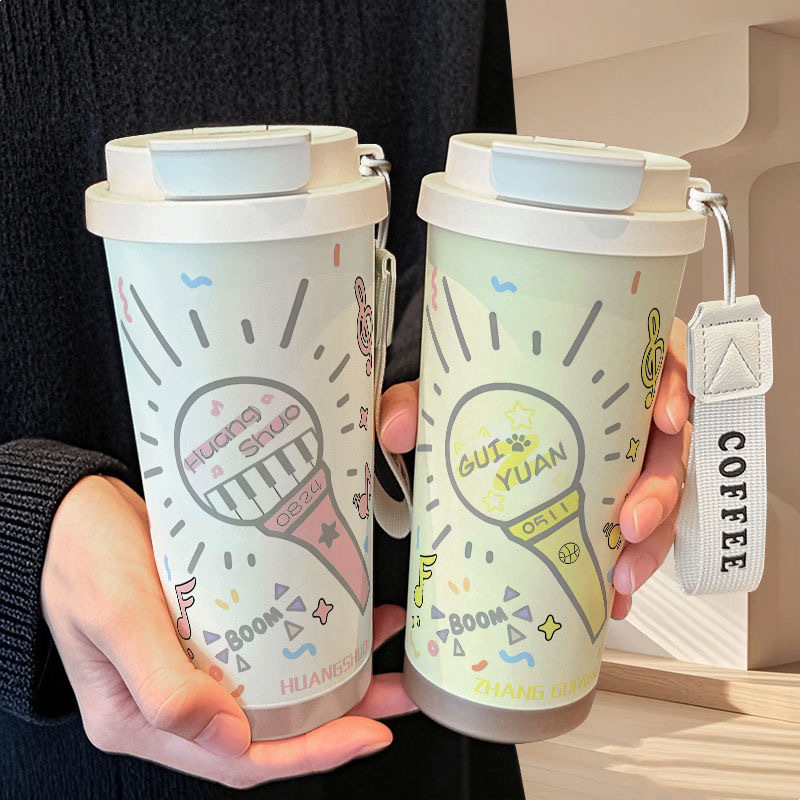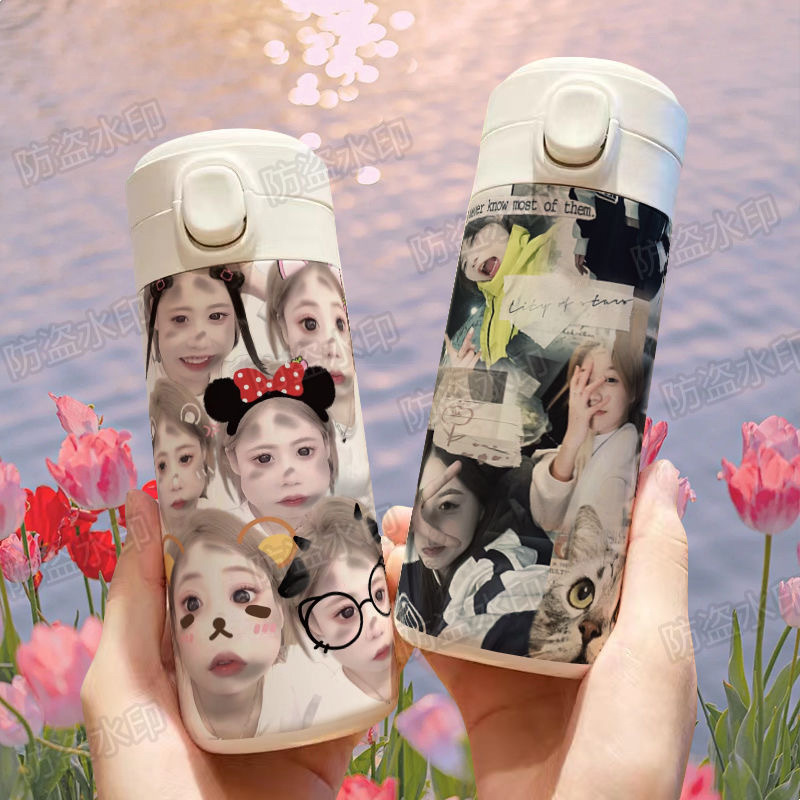 时代少年团唯美保温杯不锈钢学生高颜值吸管双饮大容量咖啡水杯