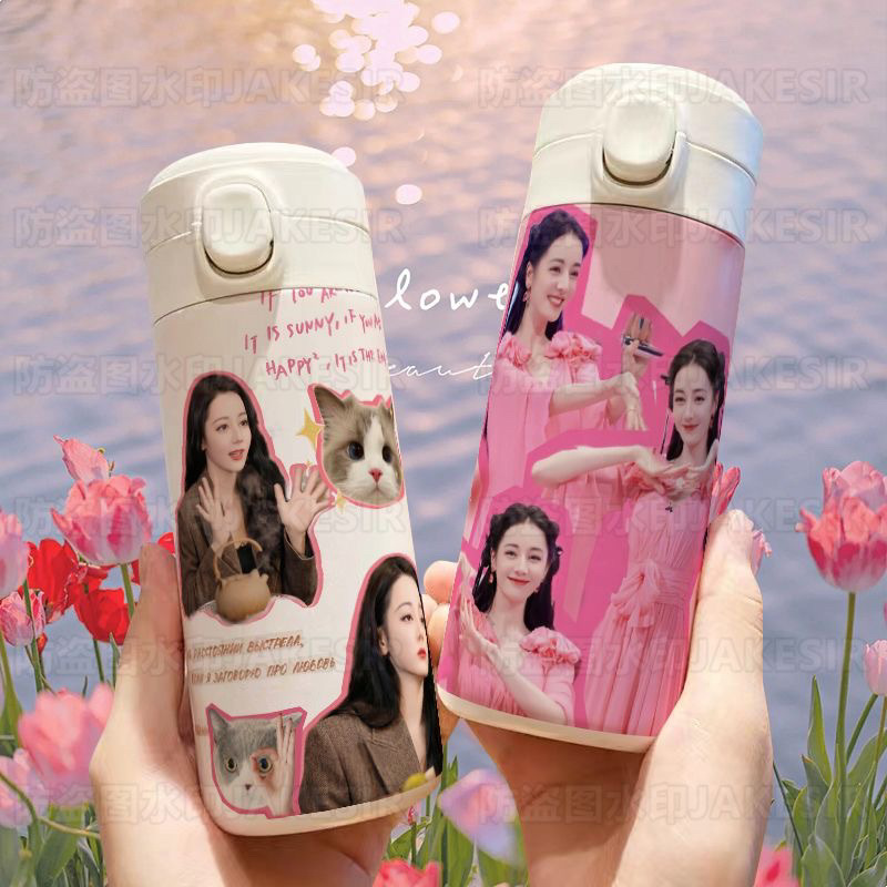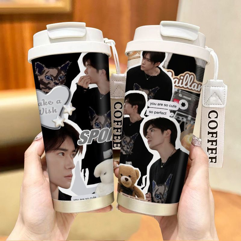 白鹿应援周边保温杯不锈钢学生高颜值吸管双饮大容量咖啡水杯