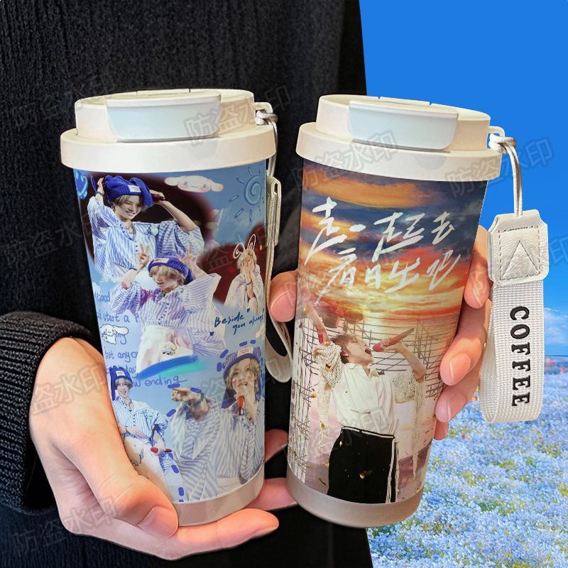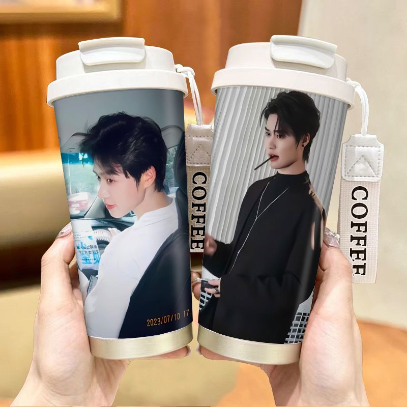 TNT时代少年团保温杯大容量316不锈钢便携车载咖啡杯双饮