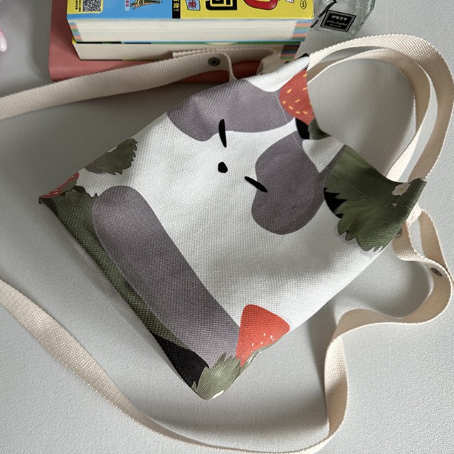 キャンバスバッグ印刷新作イラスト系文芸シンプルバケツバッグ女性斜めがけショルダーバッグ水彩大容量印刷