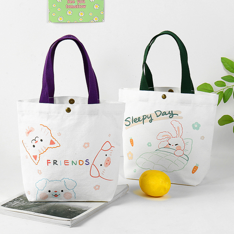 手提げキャンバスバッグ女子学生日系ins韓国版紐引き口バケツバッグ弁当袋弁当バッグ小布バッグ