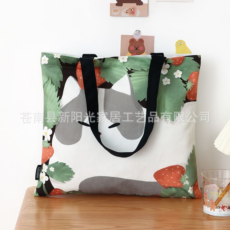 キャンバスバッグ印刷ハンドバッグ学院風学生児童街拍キャンバスバッグ学生萌えペット大容量印刷