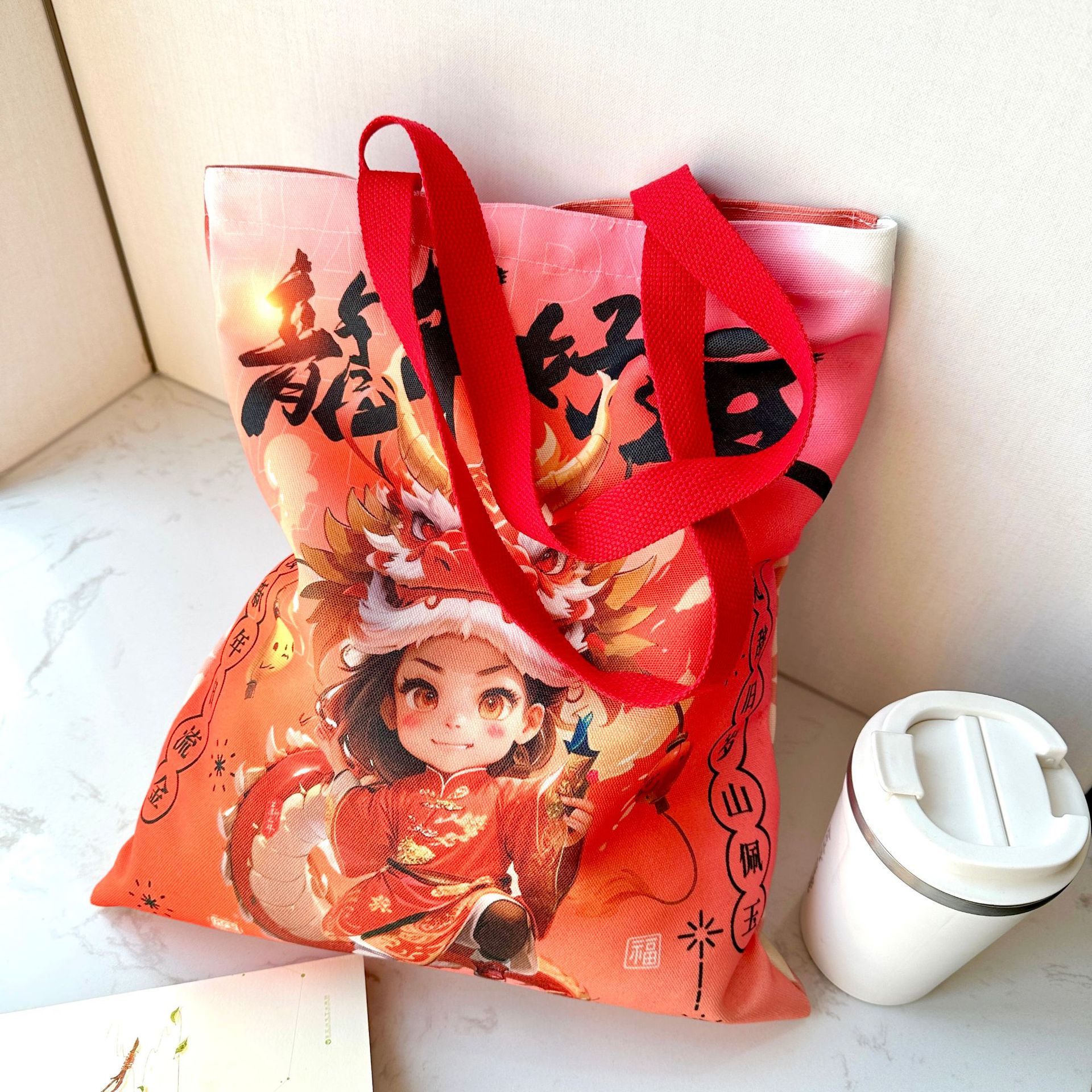 キャンバスバッグ印刷2024龍年キャンバスバッグお土産年次総会お祝いアイデア手提げ袋春大容量印刷