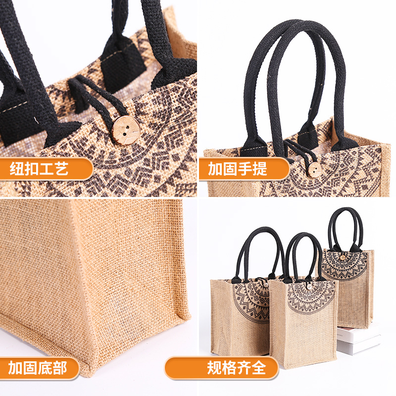 キャンバスバッグ印刷レトロショッピングバッグ麻布手提げ袋粗麻ジュートバッグ個性創意di大容量印刷