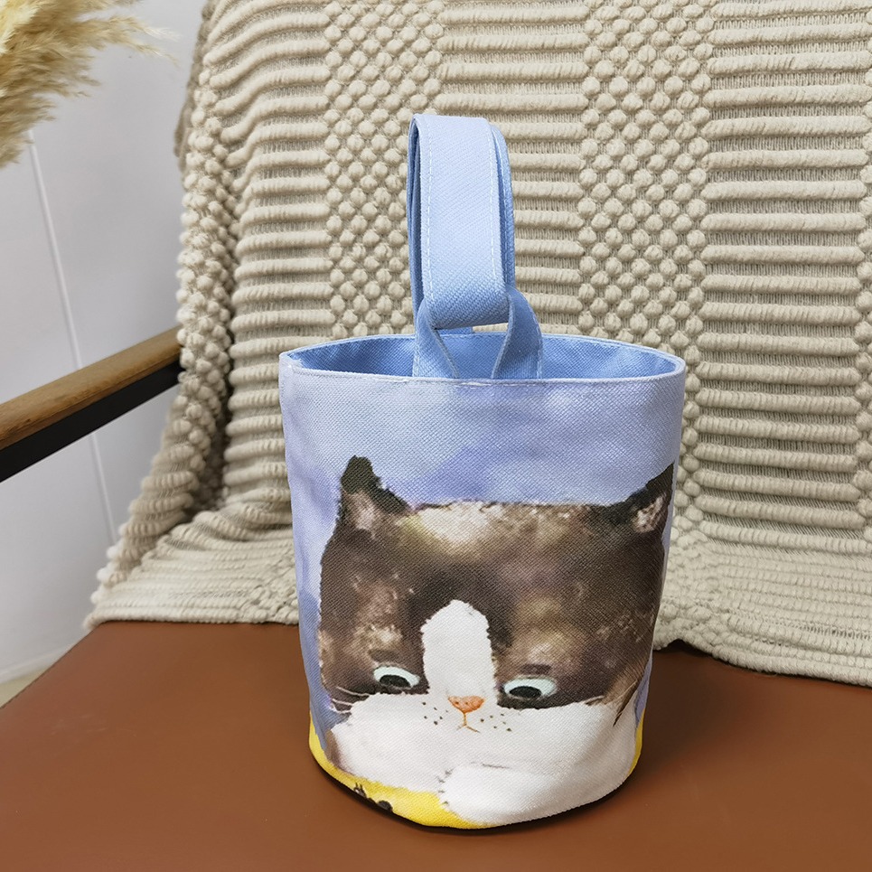 キャンバスバッグ印刷イラスト系文芸シンプルバケツバッグ水彩クリエイティブバッグ印刷大容量印刷