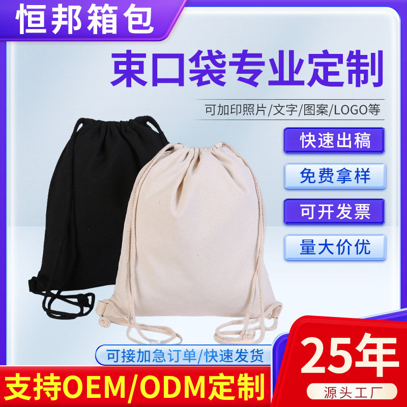 キャンバスバッグ印刷巾着袋印刷空白米キャンバスバッグ卸売リネンバッグ面大容量印刷