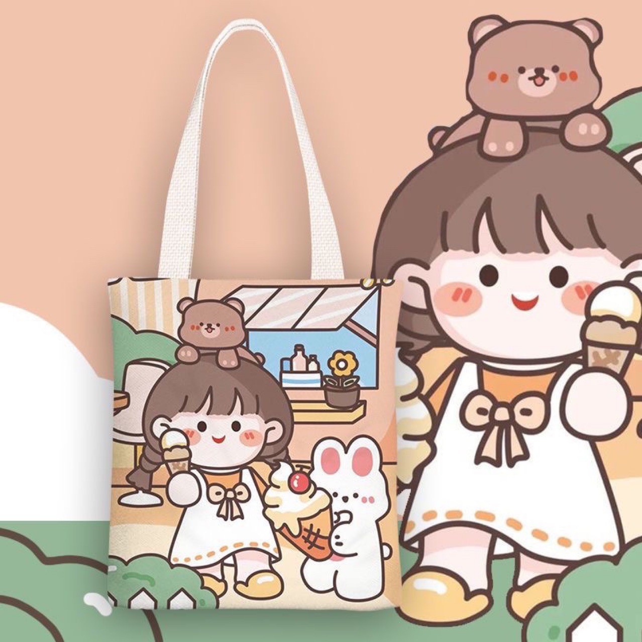 キャンバスバッグ印刷2024年新型かわいいアニメ日系キャンバスバッグ補習弁当バッグ小大容量印刷