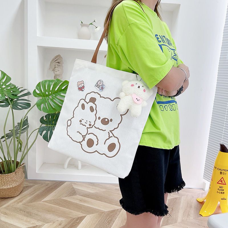 キャンバスバッグ印刷日本系アニメinsキャンバスバッグ女性ショルダーバッグシンプルでかわいいベアー手大容量印刷