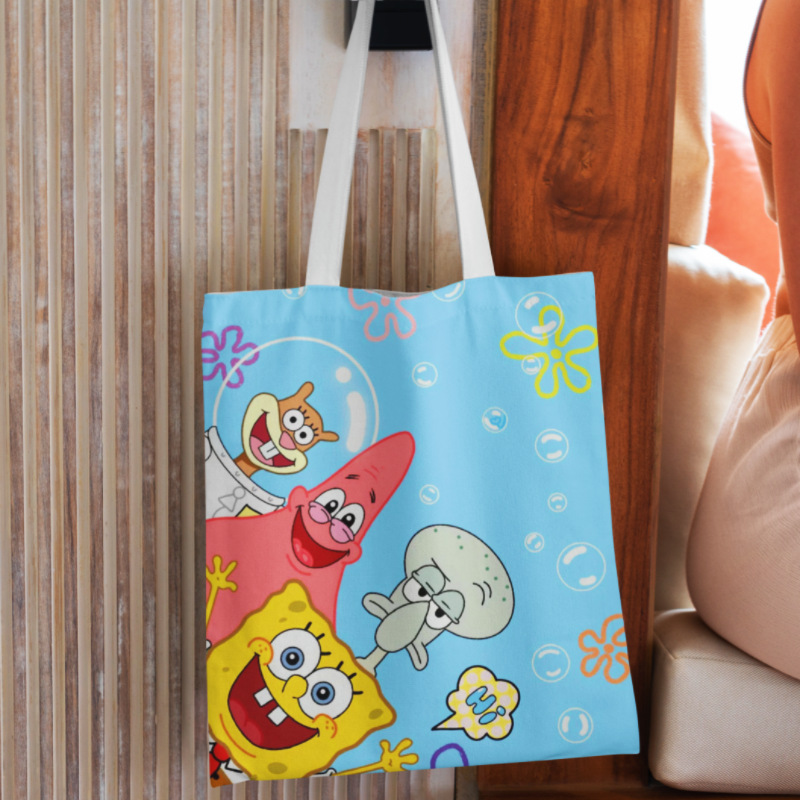 キャンバスバッグ印刷スポンジ赤ちゃんかわいい漫画キャンバスバッグ手提げ袋斜めショルダーバッグ大容量印刷
